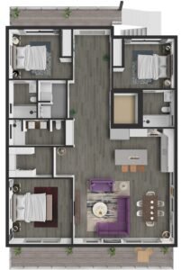 The SeaMist features three generous bedrooms and two full bathrooms, providing the perfect layout for growing families, remote workers, or those who love to entertain. The open-concept living area creates an airy, welcoming atmosphere, while the split bedroom design ensures privacy when you need it most.