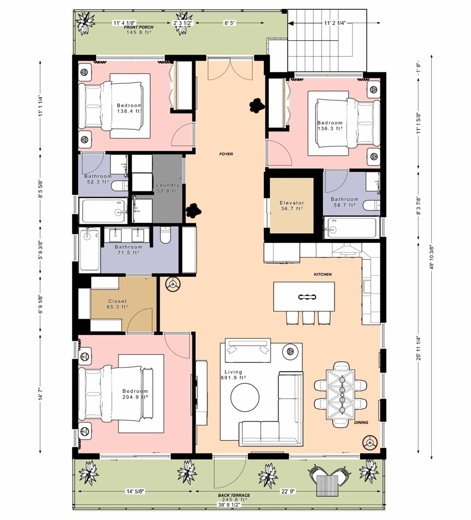 Located in Redington Beach, FL, this turnkey home features 3 bedrooms, 3 bathrooms, and 1,550 square feet of living space. With a footprint of 35 feet wide by 50 feet deep, the SeaMist was specifically designed to fit onto narrow lots with only a 35-foot wide build area. You’ll have all the space you need for your dream coastal home on stilts.