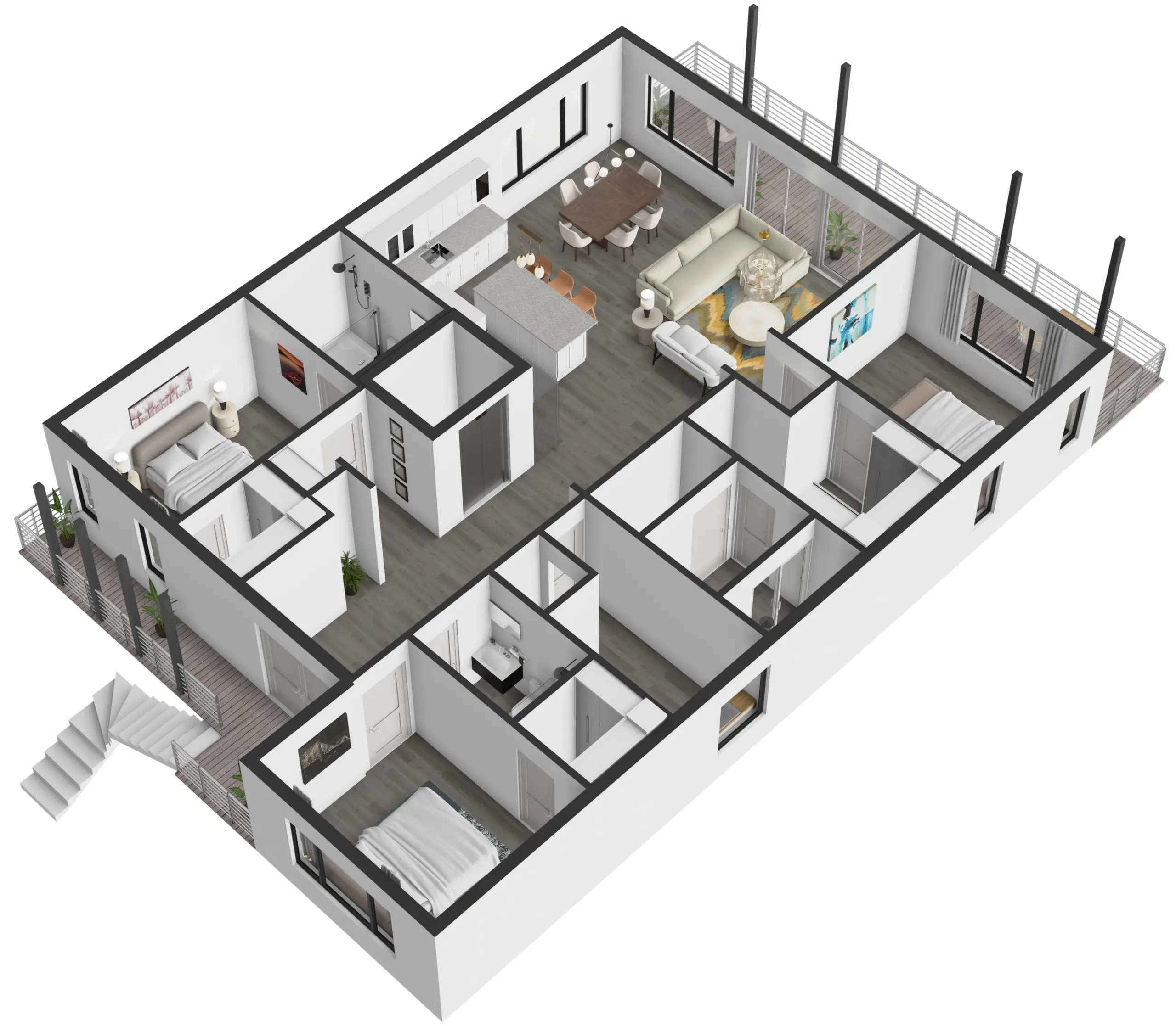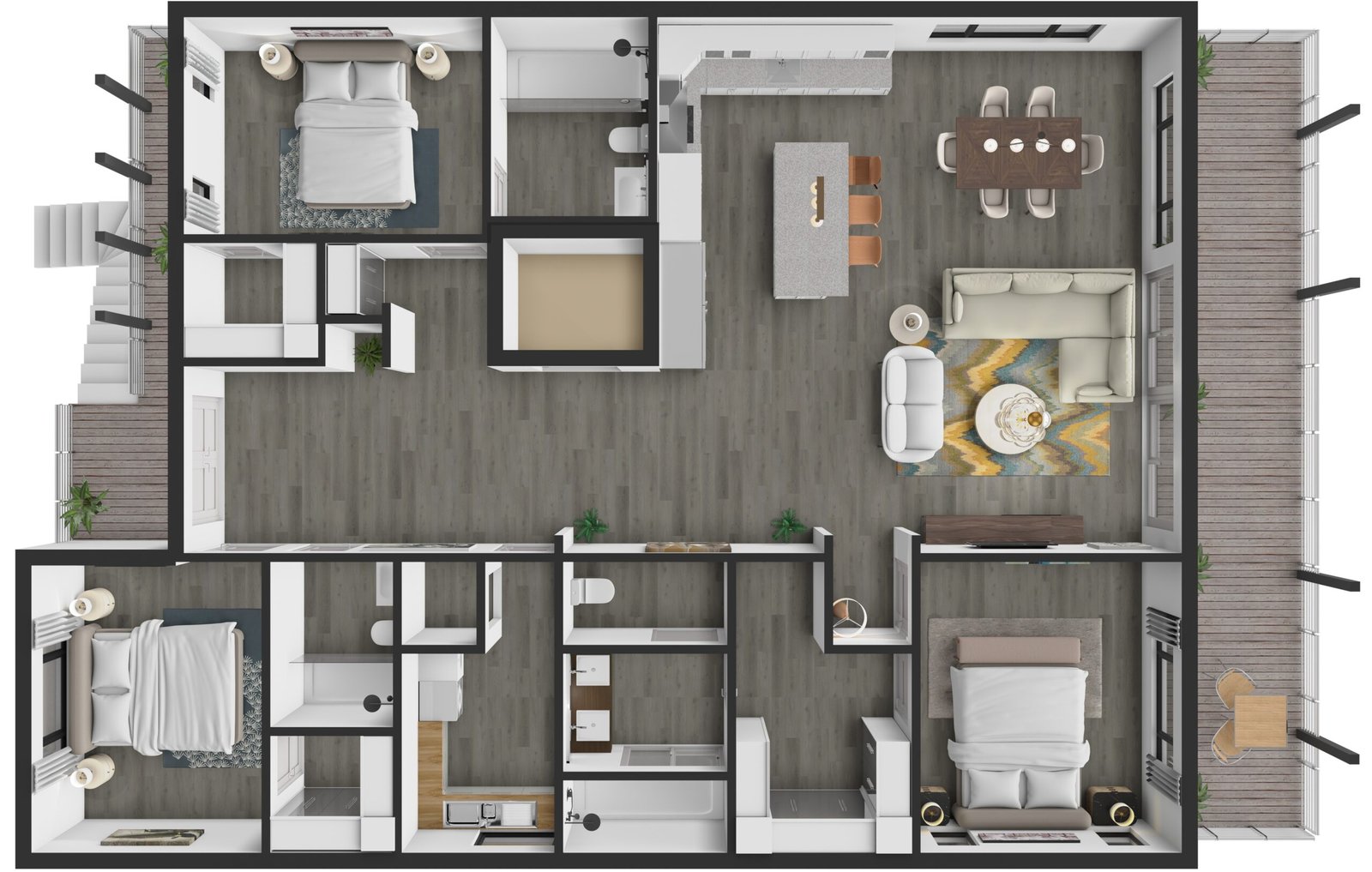 High-End Bathrooms: Spa-like sanctuaries featuring premium fixtures and elegant design elements throughout, transforming daily routines into indulgent experiences.